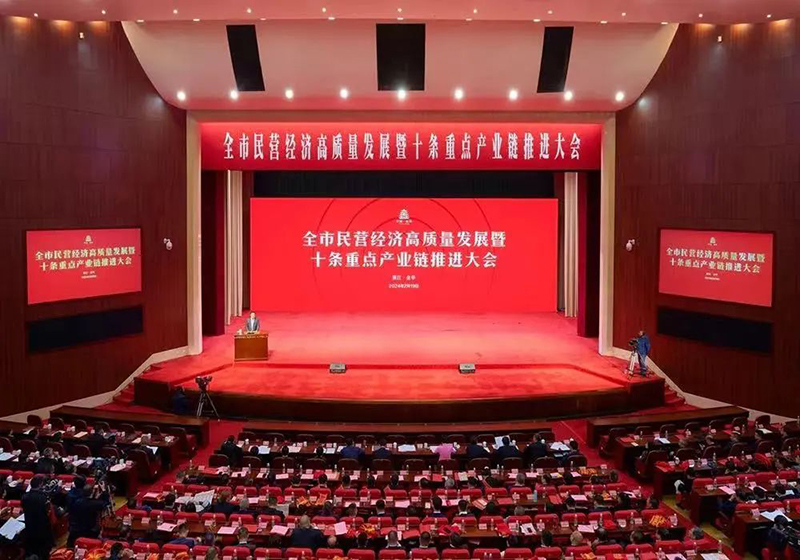 2月19日下午,金華市民營經濟高質量發展暨十條重點產業鏈推進大會在市文化中心召開,全市各相關部門、重點工業鄉鎮(街道、經濟開發區)等主要負責人及企業代表共約1000人參會。