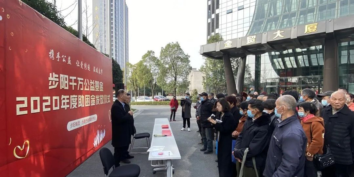 2月4日,春意融融,陽光明媚。在總部中心金貿大廈一樓廣場,步陽千萬公益基金2020年度終助困金發放活動如約而至。活動現場向需要幫助的困難家庭每戶送上1000元幫扶紅包,讓他們能夠過上一個溫暖、祥和的春節。