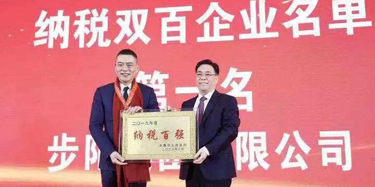 會(huì)上,步陽集團(tuán)榮膺2019年度永康市納稅百強(qiáng)企業(yè)冠軍,集團(tuán)全國區(qū)域上交國家稅收總額達(dá)4.5億元,突破了步陽歷史最高水平,成為2019年度永康市納稅第一。